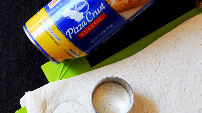 Step1Preheat oven to 425°F and spray cavities of a muffin pan with cooking spray. Remove pizza dough from packaging and allow it to come to room temperature on a floured surface. Using a rolling pin or your hands, roll the dough out into a thin layer. Using either a round cookie cutter or a clean glass, cut rounds out of the dough. You want the circle to be slightly bigger than the size of the muffin cup.