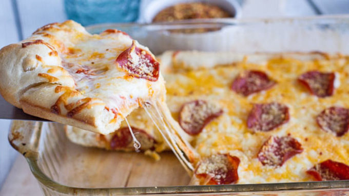 Make homemade deep dish pizza the easy way–in a casserole dish!