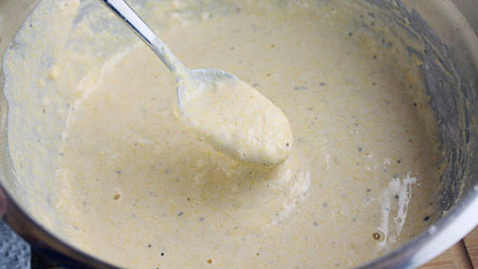 Step4Mix batter ingredients together. If you want a thinner batter, add a bit more beer. Also, if you want a softer batter, use milk instead of beer.