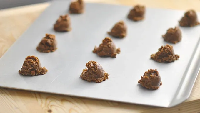Step3Remove dough from refrigerator and drop, in 1-inch balls, onto parchment-lined baking sheets.