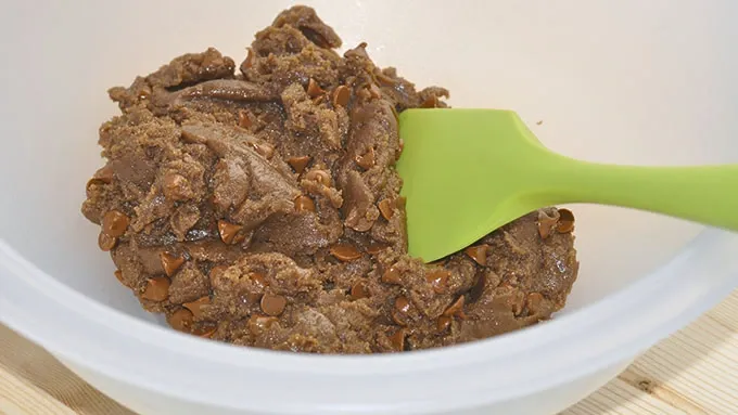 Step1Using a rubber spatula in a medium bowl, cream the cookie butter and dark brown sugar together, then add the egg, baking soda and cinnamon baking chips. Mix well.