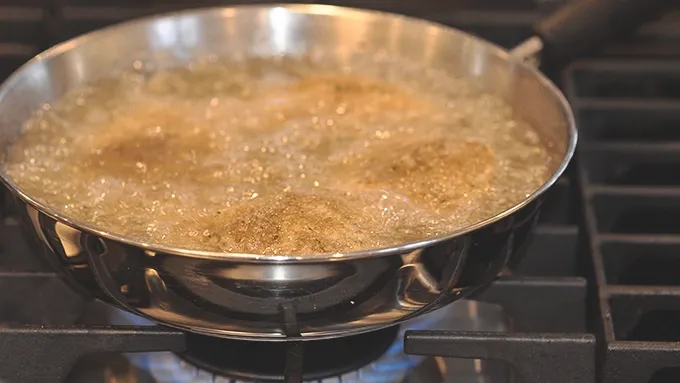 Step3In a deep skillet (or pot) heat 1-inch of canola oil over medium heat. You want it HOT before you add the chicken.