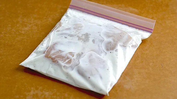 Step1Whisk together the buttermilk, garlic, salt and pepper. Transfer mixture to a resealable plastic bag. Add the chicken, seal the bag and let marinate for 2 hours.
