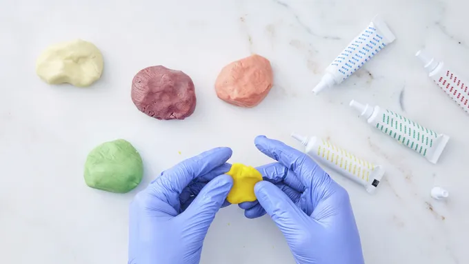 Let the modeling chocolate rest for 15 minutes before using it to sculpt figures, cut shapes or cover a cake. You can also add coloring, if desired. Wear food handling gloves and knead in the coloring.