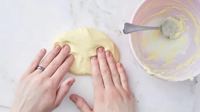 Pour out onto a cold surface like a granite countertop or marble cutting board. You can also use a baking sheet. Knead the modeling chocolate, adding small amounts of corn syrup if needed, until soft and pliable.