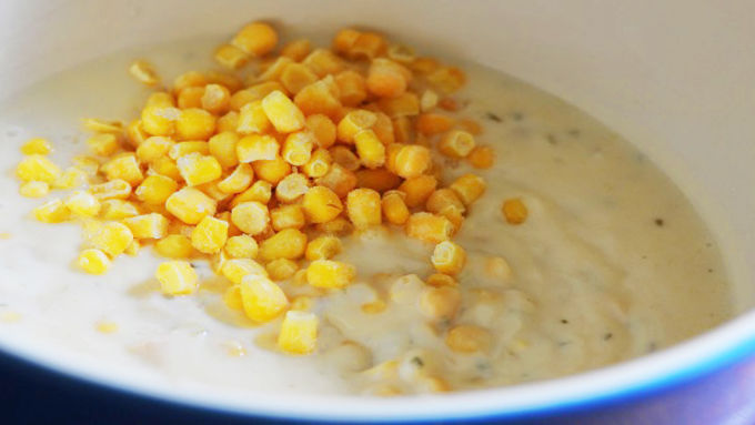 Step2Add 1/3 cup of extra corn. You can omit this if you like but I really like corn. Plus using the frozen corn adds another texture dimension to the pot pie.