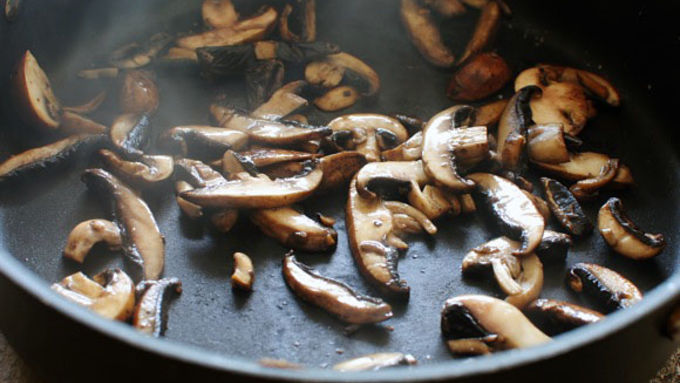 Step3Add the mushrooms to the skillet and sauté until they start to soften and brown, about 4 minutes.