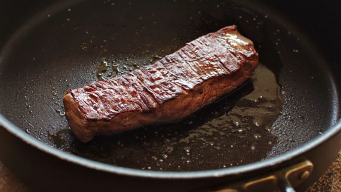 Step1Preheat oven to 400°F. Heat 2 teaspoons of oil in a large skillet over medium. Season the steak with salt and pepper on both sides. Sear on one side for 6 minutes. Flip and sear another 5. Tent the meat and let it rest while you prepare the veggies.