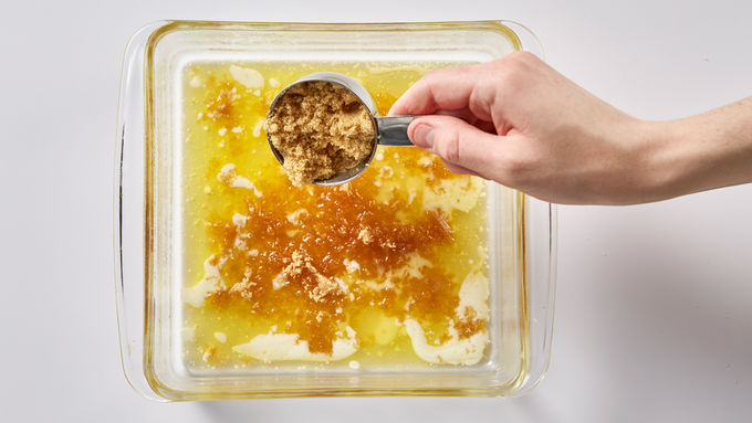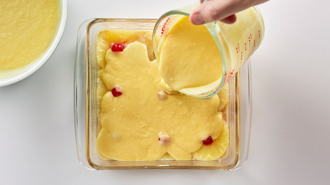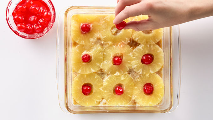 Bake cake at 350° F for 45-50 minutes, until toothpick inserted in center comes out clean. Immediately place heatproof serving plate upside down over pan; turn plate and pan over. Leave pan over cake a few minutes so brown sugar mixture drizzles over cake; remove pan. Serve warm. Store cake loosely covered.