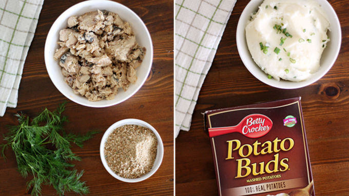 Step1Prepare Potato Buds™ as directed on package, swapping milk for sour cream. Stir in chopped chives or green onions; set aside to cool completely.