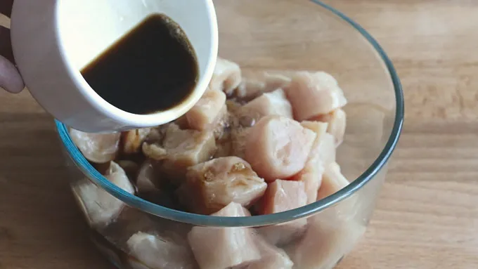 Step1Whisk the marinade ingredients together and pour over the cubed chicken. Stir to thoroughly coat the chicken and let it marinate while preparing the rest of the ingredients.![]()