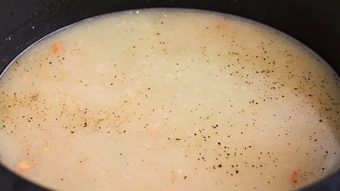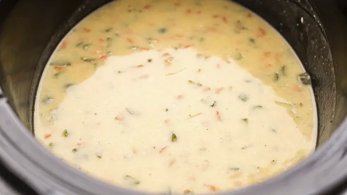 Step3To the bowl of a slow cooker, add the remaining chicken broth and the butter-flour-broth mixture and whisk until combined. Add the pickle juice, pickles, potatoes, carrots, Old Bay™ Seasoning, salt, pepper and cayenne.
