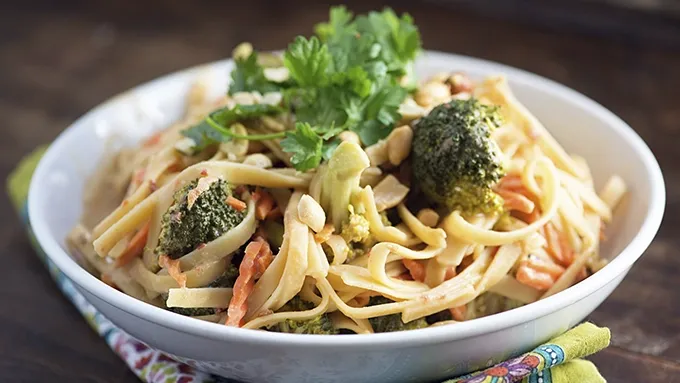 Easy Slow-Cooker Fettuccini with Peanut Sauce