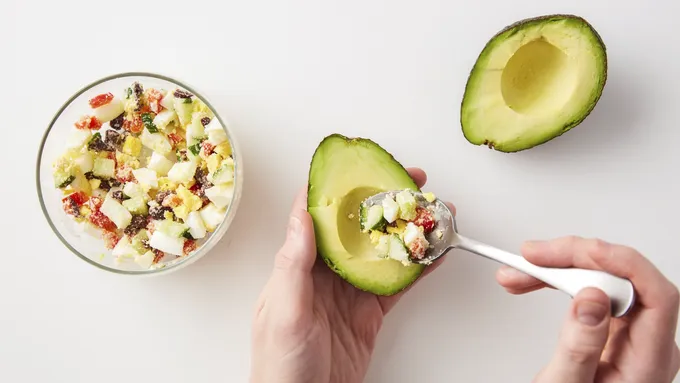 Avocado fans, we’ve taken your favorite green superfood and turned it into an easy, keto-friendly hand salad—no serving dishes required!