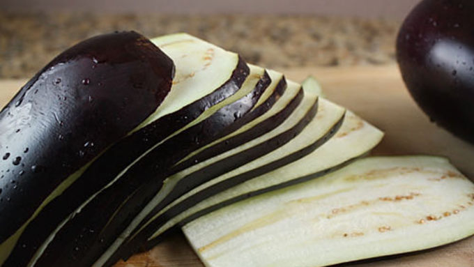 Step1Wash your eggplant and slice them long-wise into 1/4 inch slices. Layer the slices in a colander and sprinkle each layer heavily with kosher salt.