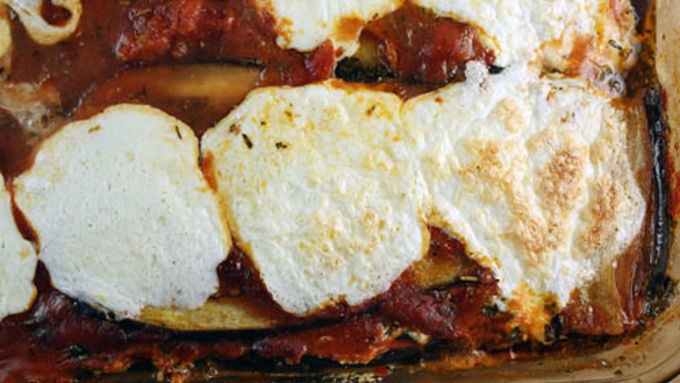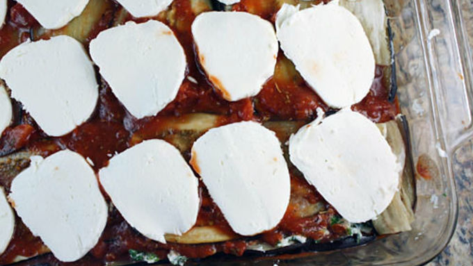 - Lasagna is one of those dishes that most people feel comfortable making because, frankly, it's pretty hard to mess up. Cook some noodles, layer them with some cheese, sauce, and more cheese. How bad could it be, right? My problem with some lasagna, though, is the noodles can be a bit too thick – unless you make them yourself. It's not like I don't use store bought noodles on occasion. I definitely do. And I will never turn it down if someone else makes it. But the basic idea behind lasagna (layers of cheese and more cheese) can be done with all kinds of different things. Specifically, I think eggplant works really well instead of the thick noodles. You can layer them really easily – just like noodles – and the end result is almost like a big eggplant parmesan casserole. Even if you're a serious carnivore, this dish is substantial enough to please everyone - vegetarians and meat eaters alike. The final product should be nice and browned on top and bubbling. Definitely let this cool before serving it up. Get your hands on some good crusty bread to go with it and you'll be all set!