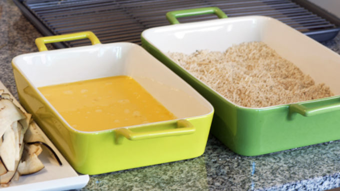 Step5In a shallow container, mix together panko, seasoned breadcrumbs, Parmesan cheese, salt and pepper.