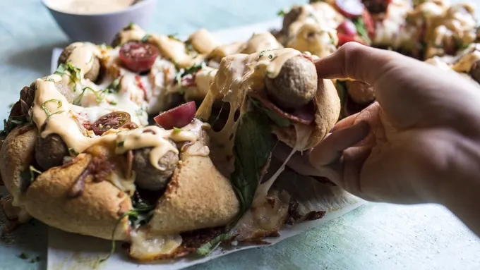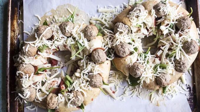 var configuration = {"title":"Extreme Cheese and Meatball Party Ring","introduction":"Serve this deliciously fun and cheesy pizza ring and impress all of your guests!","servingSize":"1 Serving","image":{"small":{"media":"(min-width: 0px)","src":"https://mojo.generalmills.com/api/public/content/FsgKSH6EjUO965rh46LQ6w_webp_base.webp?v=85f10778\u0026t=e724eca7b3c24a8aaa6e089ed9e611fd"},"medium":{"media":"(min-width: 500px)","src":"https://rms-media-prod.generalmills.com/d86a01a6-2c39-44aa-8870-7655e5fea2f8.jpg"},"large":{"media":"(min-width: 767px)","src":"https://rms-media-prod.generalmills.com/d86a01a6-2c39-44aa-8870-7655e5fea2f8.jpg"},"alt":"Extreme Cheese and Meatball Party Ring"},"contributor":{"label":"by:","name":"Half-Baked Harvest","displayDate":{"label":"Updated","date":"May 5, 2021"}},"ingredientGroups":[{"ingredients":[{"quantity":"1","description":"can (11 oz) refrigerated Pillsbury™ Original French Bread"},{"quantity":"","description":"Flour, for dusting"},{"quantity":"1/2","description":"cup pizza sauce"},{"quantity":"1","description":"cup sharp cheddar cheese, shredded"},{"quantity":"1","description":"cup mozzarella cheese, shredded"},{"quantity":"1/4","description":"cup pepperoni slices"},{"quantity":"1","description":"cup frozen meatballs"},{"quantity":"1","description":"cup fresh spinach"},{"quantity":"1","description":"cup salsa con queso, warmed"},{"quantity":"","description":"Fresh tomatoes and basil, for garnish"}]}],"steps":[{"description":"Preheat oven to 375°F. Line a baking sheet with parchment paper. Open the French bread dough and place the dough log on a surface sprinkled with flour. Use your palms to roll the log of dough until it’s about 20 inches long. Circle the dough into a ring and pinch the edges together to seal. Place on the prepared baking sheet and bake for 20-22 minutes, or until the top starts to brown.","stepShotImageUrl":"//mojo.generalmills.com/api/public/content/kzEzFymCBEKG7w_ciJf6wA_webp_base.webp?v=dc352494\u0026t=3653fe2f5ecd4a47a5a51c97e429947c"},{"description":"Let the bread cool to the touch and use a serrated knife to cut slices about 1-inch apart in the bread around the ring, making sure not to cut all the way through the loaf.","stepShotImageUrl":"//mojo.generalmills.com/api/public/content/b1WNt6uyJUWqumzYQzwfgA_webp_base.webp?v=9e5f6375\u0026t=3653fe2f5ecd4a47a5a51c97e429947c"},{"description":"Stuff a rounded teaspoon of pizza sauce or marinara sauce between each slice. Then, stuff mozzarella and cheddar cheese between each slice, reserving a few tablespoons of cheese. Stuff a few pieces of pepperoni, a meatball and a few spinach leaves between each slice. Lightly sprinkle remaining cheese over loaf.","stepShotImageUrl":"//mojo.generalmills.com/api/public/content/n7OK6OIS2UaG8NJBI3objg_webp_base.webp?v=2e79a394\u0026t=3653fe2f5ecd4a47a5a51c97e429947c"},{"description":"Bake for 10-15 minutes or until cheese begins to brown. Remove from oven and drizzle pizza with warm cheese sauce. Top with tomatoes, basil and more pizza sauce if desired. Enjoy!","stepShotImageUrl":"//mojo.generalmills.com/api/public/content/gQcpfEy440eXD4gmbjnoCA_webp_base.webp?v=09283364\u0026t=3653fe2f5ecd4a47a5a51c97e429947c"}],"tips":[{"title":"","description":"If you want to make two pizza rings (like in the photos), simply double the recipe.","category":"Recipe/Ingredient Facts","tipShots":[]},{"title":"","description":"You can make the recipe vegetarian-friendly by omitting the meatballs and pepperoni and adding mushrooms in their place.","category":"Substitution","tipShots":[]},{"title":"","description":"I think you know it is party time when you see a pizza like this.\r\n\r\nDo you see just how loaded to the brim with goodness it is?!?! I mean, it has cheese, times like three, meatballs, pepperonis, a little spinach for color and yes, more cheese!! Need I say more?\r\n\r\nWith it being mid September and all, I in full on fall mode. This means, football, apples, cheesy food, Halloween thoughts and yes, even some Thanksgiving thoughts too! I am maybe just a little bit obsessed with fall. All that said, I created this recipe with all the upcoming entertaining of football games and holidays in mind. I honestly can not think of a better recipe for a little game day party. This pizza ring is anything anyone could ever want in a game day recipe. Plus, it is so fun, so cute and so very easy to make too! Yes, please! ","category":"Editorial","tipShots":[]}],"kitchenTips":[{"title":"","description":"If you want to make two pizza rings (like in the photos), simply double the recipe.","category":"Recipe/Ingredient Facts","tipShots":[]},{"title":"","description":"You can make the recipe vegetarian-friendly by omitting the meatballs and pepperoni and adding mushrooms in their place.","category":"Substitution","tipShots":[]}],"additionalContent":[],"faq":[],"tipCategories":[{"categoryName":"Editorial","heading":"More About This Recipe","cssClass":"recipePartStory","expandOnInit":false,"expandText":"More +","collapseText":"Less -","expandEventName":"","collapseEventName":"","image":"","tips":[{"title":"","description":"I think you know it is party time when you see a pizza like this.\r\n\r\nDo you see just how loaded to the brim with goodness it is?!?! I mean, it has cheese, times like three, meatballs, pepperonis, a little spinach for color and yes, more cheese!! Need I say more?\r\n\r\nWith it being mid September and all, I in full on fall mode. This means, football, apples, cheesy food, Halloween thoughts and yes, even some Thanksgiving thoughts too! I am maybe just a little bit obsessed with fall. All that said, I created this recipe with all the upcoming entertaining of football games and holidays in mind. I honestly can not think of a better recipe for a little game day party. This pizza ring is anything anyone could ever want in a game day recipe. Plus, it is so fun, so cute and so very easy to make too! Yes, please! ","category":"Editorial","tipShots":[]}],"isE