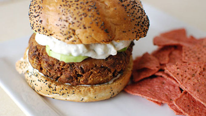 - I love burgers, but sometimes I want a vegetarian option. I have explored many veggie burger varieties, but haven't found one I like. This falafel burger, on the other hand, is pretty fantastic and feels like you are eating a burger. The chickpeas have a meaty quality to them and are packed with protein too! Nice thick patties have the perfect mixture of crunch and creaminess as you bite into them. Enjoy!
