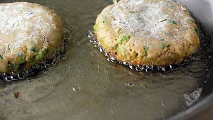 Step4Form burger patties with chickpea mixture and very lightly coat in flour.