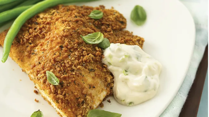 Searching for a white fish that actually has some flavor? Try dialing it up with this seasoned coating made from Fiber One cereal!