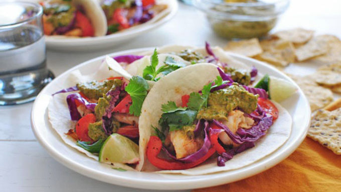 Serve up this exciting dinner of fish tacos topped with fresh Chimichurri Sauce.