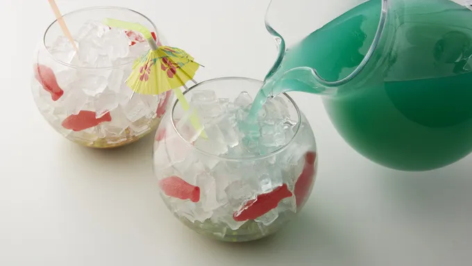 Swim (er, drink) with the fishes—Swedish fishes, that is! In an ocean of blue tropical punch with a candy pebble floor, now you can enjoy your favorite college party drink any time you want.