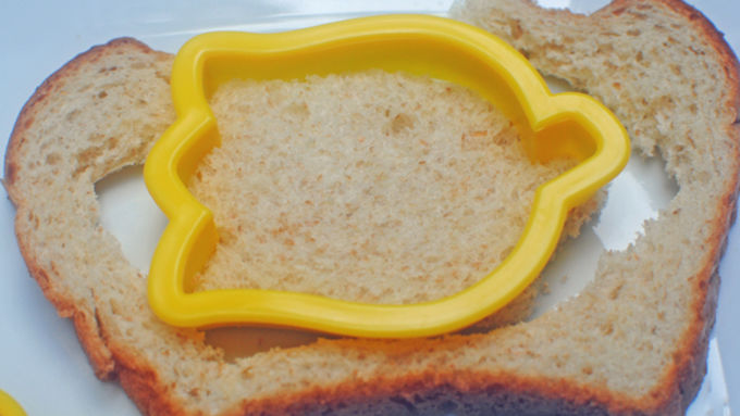 Step1Using a cookie cutter, cut out one shape per slice of bread.