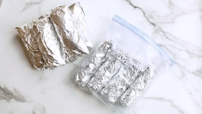 To freeze: Roll each burrito in a square of aluminum foil. Then place in a gallon-size zip-top freezer bag.