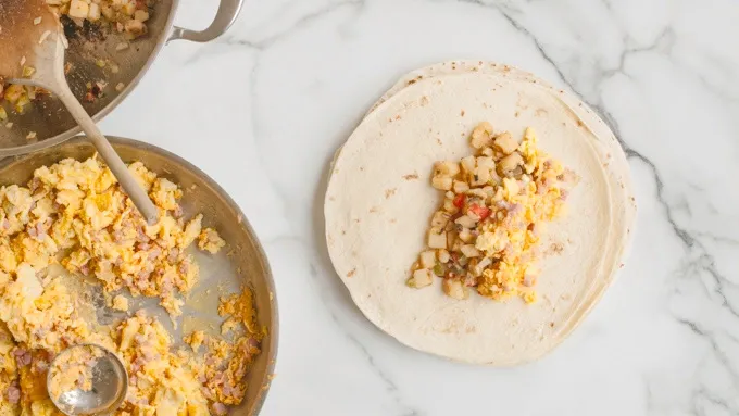 var configuration = {"title":"Freezer-Friendly Denver Omelet Breakfast Burritos","introduction":"Wimpy breakfast burritos, get outta here. These babies are packed with egg, cheese, potatoes, peppers, and a ton of hearty and rich ham. This is a freezer breakfast that\u0027ll keep you full until lunch.","servingSize":"1 Serving","image":{"small":{"media":"(min-width: 0px)","src":"https://mojo.generalmills.com/api/public/content/kPQveYDU50KhPEZ-s6-L4A_webp_base.webp?v=eb578f0e\u0026t=e724eca7b3c24a8aaa6e089ed9e611fd"},"medium":{"media":"(min-width: 500px)","src":"https://rms-media-prod.generalmills.com/08386810-ffad-4eea-931d-51b7f4f58f75.jpg"},"large":{"media":"(min-width: 767px)","src":"https://rms-media-prod.generalmills.com/08386810-ffad-4eea-931d-51b7f4f58f75.jpg"},"alt":"Freezer-Friendly Denver Omelet Breakfast Burritos"},"contributor":{"label":"by:","name":"Wholefully","profileUrl":"/contributors/wholefully","displayDate":{"label":"Updated","date":"Nov 6, 2023"}},"ingredientGroups":[{"ingredients":[{"quantity":"1/4","description":"cup (1/2 stick) unsalted butter, divided"},{"quantity":"1","description":"large onion, diced"},{"quantity":"1","description":"large red bell pepper, diced"},{"quantity":"1","description":"large green bell pepper, diced"},{"quantity":"1","description":"package (16 oz) Cascadian Farm™ Frozen Organic Country Style Potatoes"},{"quantity":"","description":"Salt and pepper, to taste"},{"quantity":"","description":"Cooking spray"},{"quantity":"12","description":"eggs, beaten"},{"quantity":"8","description":"oz sharp cheddar cheese, shredded"},{"quantity":"1","description":"cup diced ham"},{"quantity":"8","description":"tortillas from 1 package (11 oz) Old El Paso™ Flour Tortillas for Burritos (8 Count)"}]}],"steps":[{"description":"Melt 2 tablespoons of butter in a large skillet over medium high heat. Add in the onion, red bell pepper and green bell pepper, and cook until tender, about 5 minutes.","stepShotImageUrl":"//mojo.generalmills.com/api/public/content/kYFWAVzAckmCqJf6oHN0OA_webp_base.webp?v=32b82a03\u0026t=3653fe2f5ecd4a47a5a51c97e429947c"},{"description":"Add in the remaining butter and the frozen potatoes. Cook, stirring frequently, until the potatoes are brown and soft, about 8 minutes. Remove from heat, season with salt and pepper, and set aside.","stepShotImageUrl":"//mojo.generalmills.com/api/public/content/olBBCOx9uU6NLrFEzf0fow_webp_base.webp?v=9d0fad01\u0026t=3653fe2f5ecd4a47a5a51c97e429947c"},{"description":"Heat a second large skillet over medium heat and spray liberally with cooking spray. Add in the eggs and scramble until cooked through, about 10 minutes. Remove from heat, and stir in the cheese and ham. Season with salt and pepper and set aside.","stepShotImageUrl":"//mojo.generalmills.com/api/public/content/9NnCLDa95UWUi8RJroLdfA_webp_base.webp?v=64e91538\u0026t=3653fe2f5ecd4a47a5a51c97e429947c"},{"description":"Assemble the burritos by placing a heaping 1/3 cup each of the potato mixture and the egg mixture into the middle of a tortilla. Roll burrito closed.","stepShotImageUrl":"//mojo.generalmills.com/api/public/content/yyLCfNYJNU24G4uNim6ABg_webp_base.webp?v=8a37ef15\u0026t=3653fe2f5ecd4a47a5a51c97e429947c"},{"description":"Repeat with remaining ingredients. ","stepShotImageUrl":"//mojo.generalmills.com/api/public/content/t6Us6oEzM0-OovMG1Ouknw_webp_base.webp?v=c2c5e036\u0026t=3653fe2f5ecd4a47a5a51c97e429947c"},{"description":"To freeze: Roll each burrito in a square of aluminum foil. Then place in a gallon-size zip-top freezer bag.","stepShotImageUrl":"//mojo.generalmills.com/api/public/content/rdtxVf_M9kKsebfIoIEyJQ_webp_base.webp?v=9a7ec5d4\u0026t=3653fe2f5ecd4a47a5a51c97e429947c"},{"description":"To reheat in microwave: Remove frozen burrito from aluminum foil and wrap in paper towel. Microwave on high for 2-3 minutes or until heated through."},{"description":"To reheat in oven: Place foil-wrapped burrito directly on the rack in a 350°F oven for 40-45 minutes. You can cut this time back to 10-15 minutes by defrosting the burrito in the fridge in the night before."}],"tips":[{"title":"","description":"Meal prepping is all the rage right now, and it really does work for a lot of folks, but here’s the honest truth about all those beautiful meal preps you see gracing Instagram—chances are, the person behind it spent hours and hours prepping all those meals. Now, I don’t know about you, but my limited weekend time is wayyyyyy too precious to devote half of it to cooking. \r\n\r\nJust because massive scale, Instagram-perfect meal prepping isn’t right for everyone, it doesn’t mean you can’t glean some awesome ideas from those meal prepping rock stars. Here is exactly how to get your food in the door of meal prep without it taking over your life: pick one area to focus on.\r\n\r\nMaybe you are terrible about having healthy snacks on hand. Or maybe your evenings are so packed that getting dinner on the table is almost impossible. Whatever your personal pain point is, identify it, and use meal prep to help you fix it.\r\n\r\nFor me, it’s all about the breakfast. I know breakfast is important, but I more-often-than-I-care-to-admit fill up on coffee, use my caffeine high to jump right into work, and then don’t realize until lunchtime that I skipped breakfast. Not so healthy. Meal prep helps me solve that. I make my breakfast on the weekends, and then have it stashed in the freezer and ready to go. On weekday mornings, I just heat and eat. It takes longer for me to brew my pot of coffee!\r\n\r\nThese Denver Omelet Breakfast Burritos are my latest meal prep breakfast fave. They are so hearty and filling! I can eat one of these babies first thing in the morning and not feel hungry again until lunch time (which is, honestly, somewhat of a miracle).","category":"No Title","tipShots":[]},{"title":"","description":"Meal prepping is all the rage right now. It really does work for a lot of folks, but here’s the honest truth about a