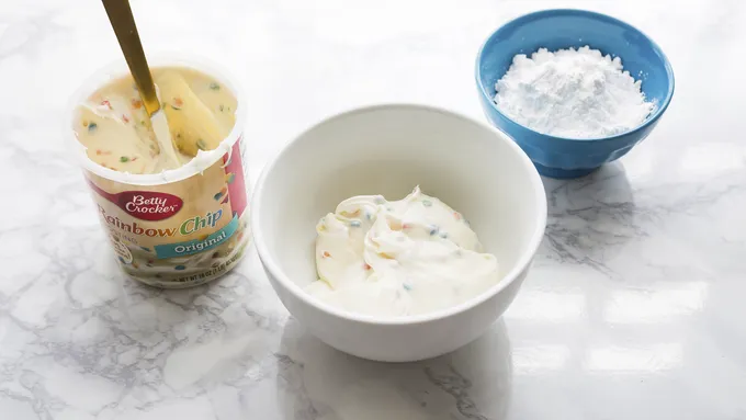 - 1/4 cup from 1 tub (16 oz) Betty Crocker™ Original Rainbow Chip Frosting