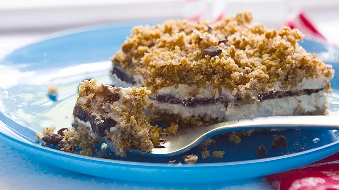 Take, for instance, our frozen crunch cakes. It’s basically Delicious poured into a pan and sliced into personal-size pieces. Crunchy granola with a creamy filling? Yes, please!