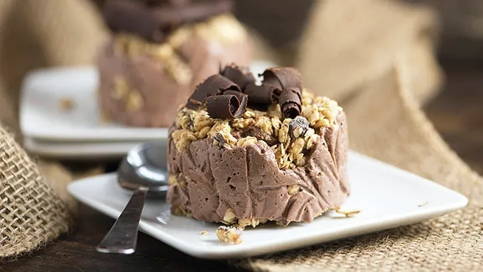 - Let’s talk about date night, shall we? Normally, I’m the type of girl to demand a dinner out for date night. I mean, I cook all day. Cooking for date night is not considered romantic in my world. But do you know what is romantic? Coming home after a fancy dinner out with my love to devour a decadent homemade dessert. By candlelight, of course, so that he can barely see me shoving the dessert into my face at supersonic speeds. Your next date night demands these Frozen Tiramisu Crunch Cakes! I’ll share a recipe for two cakes, but you can easily adjust this to make as many as you’d like. And the best part? These are beyond easy and only need four ingredients. When you remove the finished cakes from the freezer, plop them right out onto a pretty plate. I like to top mine with chocolate curls, but that’s totally optional. A sprinkling of cocoa powder would work just as well. Set these set out at room temperature for about 15 minutes before devouring.