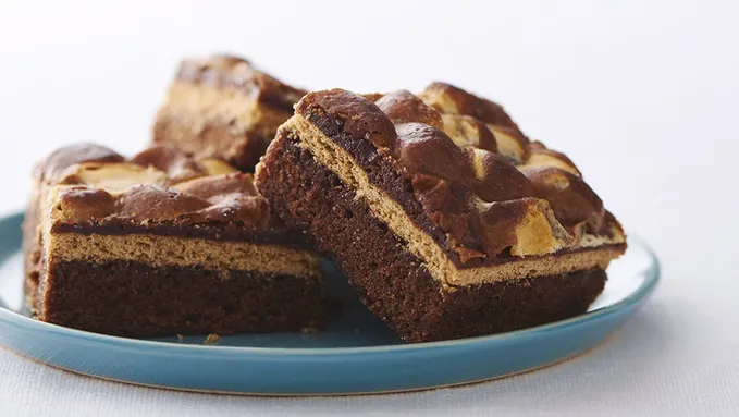 Step2Make brownie batter as directed on box for cakelike brownies. Stir in chocolate chips and vanilla baking chips. Spread in pan. Bake 22 to 25 minutes or until toothpick inserted 2 inches from side of pan comes out almost clean. Transfer to cooling rack to cool completely in pan, about 1 hour.