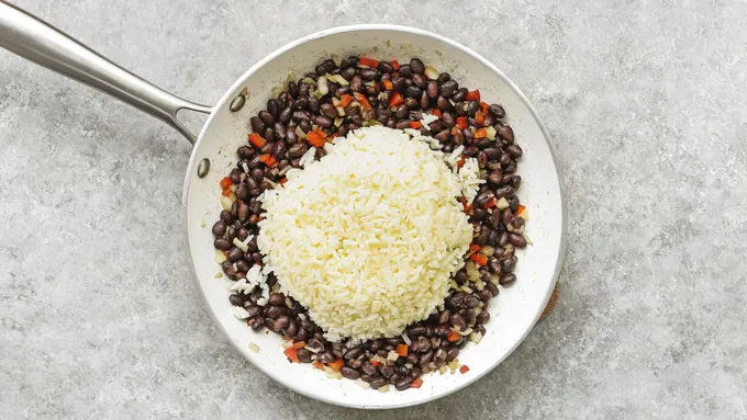 Step3Stir in white rice and continue cooking for 2 to 3 minutes, or until all ingredients are heated through. Adjust seasoning if necessary.