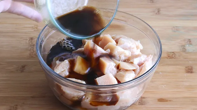 Step1Whisk the marinade ingredients together and pour over the cubed chicken. Stir to thoroughly coat the chicken and let it sit while preparing the rest of the ingredients.