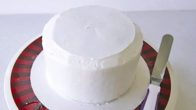 Step3Set one cake layer on a cake board. Frost the top of that layer, set another layer on top, add frosting, and put a third and final layer on top.