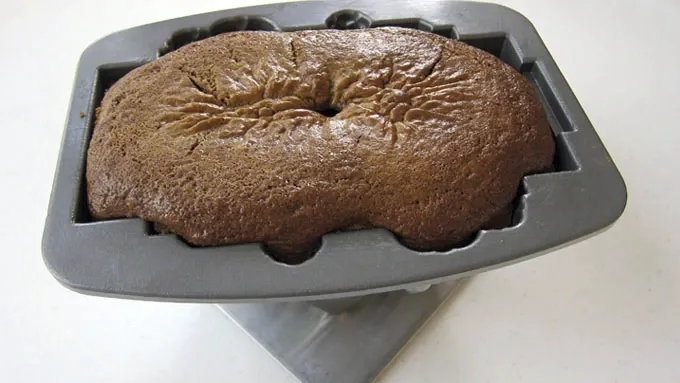 Step3Remove 1 cup of batter and reserve for another use. Pour remaining batter in the cake pan. Set pan in oven and set a baking pan on the rack below the cake in case the cake spills over. Bake for 55-65 minutes. Remove and cool for 10 minutes.