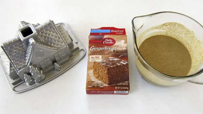 - If you love the look of a gingerbread house but hate all the work, this dessert is for you! Instead of painstakingly baking cookies and cutting them to assemble into a sturdy house, all you have to do is whip up two Betty Crocker™ Gingerbread Cake mixes and bake them in a 3-D gingerbread cake pan. The gingerbread house cake has so much detail that you can just serve the cake plain, but it's more fun to add some decorations! Just like with any gingerbread house, you can get as creative as you want when decorating. Add Betty Crocker™ icing, decors, and some candy to create a simple festive treat, or really go all out and create a more elaborately decorated house. The choice is yours! This house is simple, elegant, snow-covered—and was super simple to make. In order to make this gingerbread house cake, you'll need a gingerbread house cake pan. Even though it's non-stick, it's best to brush it with shortening and dust it with flour. Or simply spray it with some baking spray that has flour in it before baking your cake. When using the two cake mixes for this recipe, you’ll have just a bit more cake batter than you need to fill the pan, so remove 1 cup of the batter and use it to make a few cupcakes to snack on. Pour the remaining batter in the pan and set the pan in the oven.