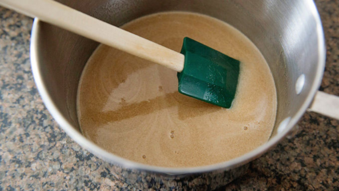 Step2Add brown sugar, butter, and water to a medium saucepan. Heat over medium heat until all ingredients are melted.