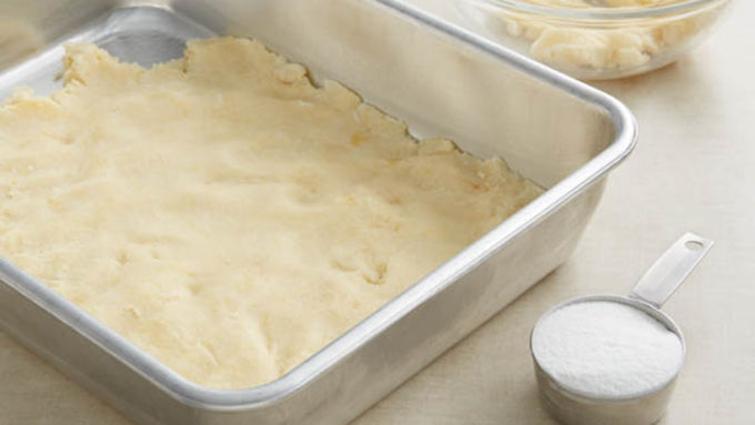 Step4Pour filling evenly over warm base.