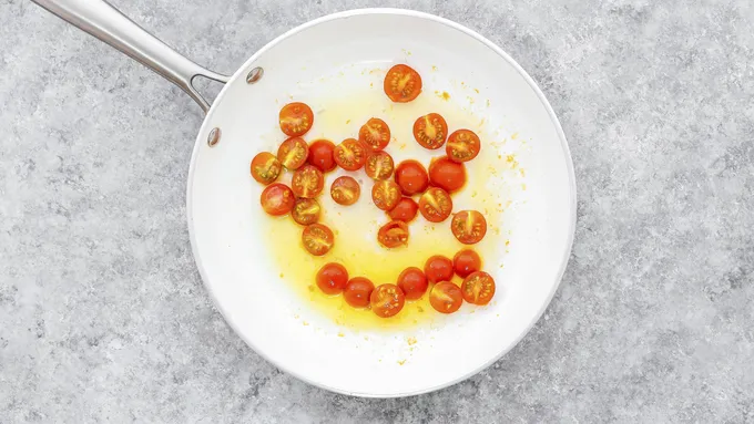 Step2Heat remaining 2 tablespoons olive oil in a large saucepan over medium heat. Add tomatoes and sauté for 2 to 3 minutes.