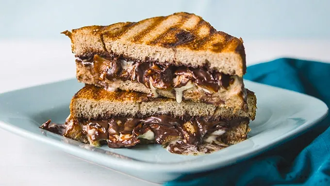 - Open your eyes – it's not a dream. This confection is yours. All yours. Okay, if I tell you something, promise you won’t snicker? This gorgeous little autumn-inspired sandwich has the following perfect flavors: Honey-roasted apples. Sea-salt caramel and dark chocolate. Cinnamon swirl bread. Yeah, I know. It sounds too good to be true. Around our parts, we just say it sounds too good not to eat. Get all of these gorgeous flavors. Welcome fall. Turn your grilled cheese habit into this irresistible eat! Place on a panini grill or indoor grill to cook. And prepare your heart and soul for all the good parts of fall. Which will now and forever include this amazingly melty and sinfully sweet treat. Happy, happy season's eatings!