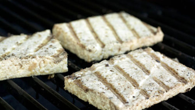 Step4Grill tofu over high heat for 5-6 minutes per side.