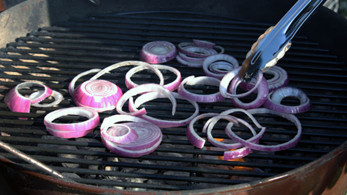 Step2Place shrimp and onions on grill and cook until charred, about 5 minutes. Remove from grill, remove shrimp from skewers and set aside.