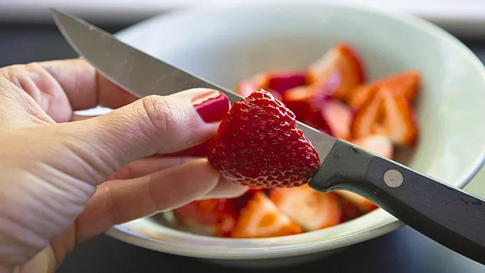 Step2In a small bowl, stir together strawberries and sugar. Use a fork to lightly mash the strawberries.