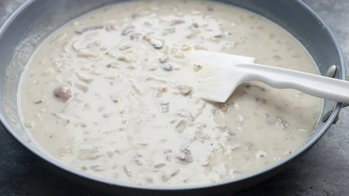 Step4Add chicken stock to the skillet slowly, stirring constantly, followed by the milk. Allow the mixture to thicken into a gravy and then season with salt and pepper.![]()