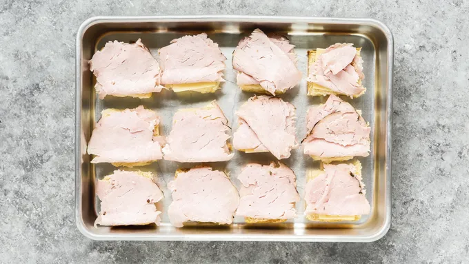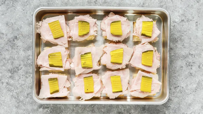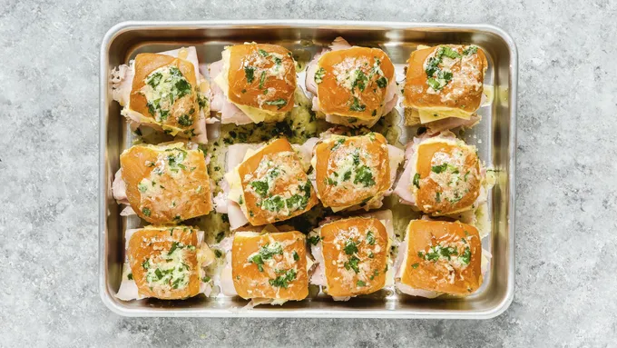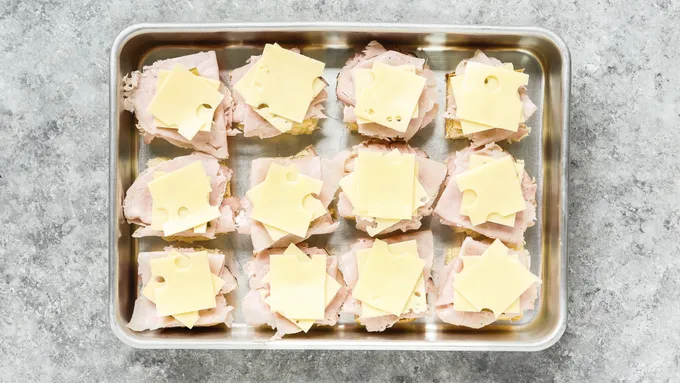 Step1Preheat oven to 350°F. Separate rolls and slice them in half horizontally. Arrange bottom halves of rolls in a 13x9-inch baking pan.