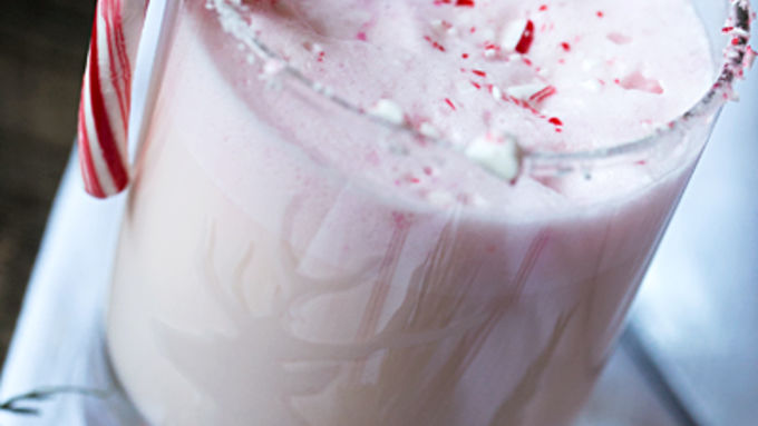 This is a scrumptious peppermint holiday punch made with eggnog and served in a glass with a candy cane rim. It's light in sweetness and has the perfect blend of ingredients!