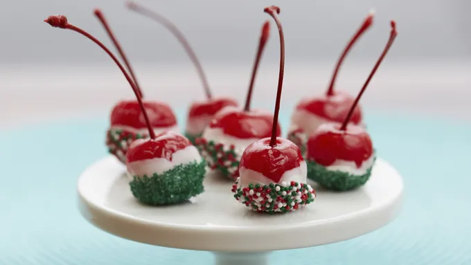 If you’re having a hard time hunting down holiday-colored sprinkles, hit the cake-making aisle of the craft store for a nice selection of colored nonpareils.